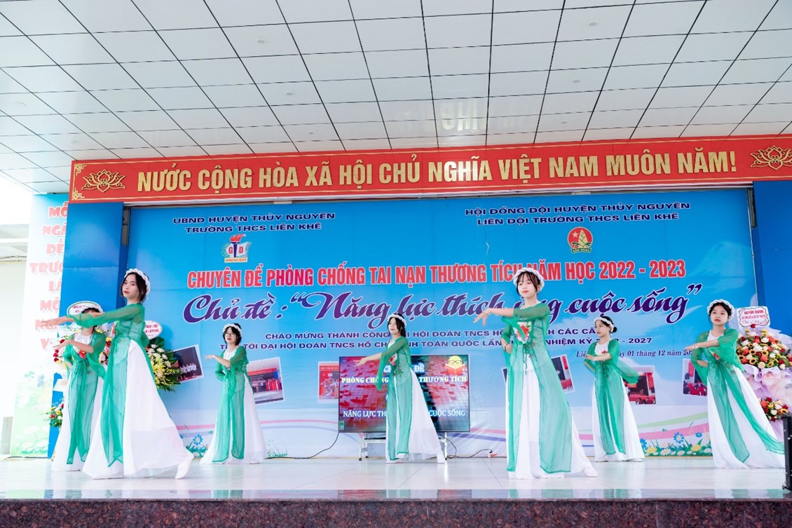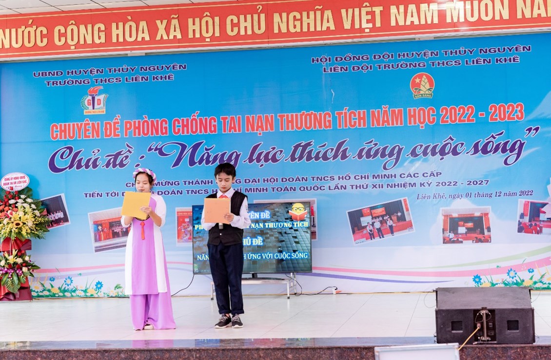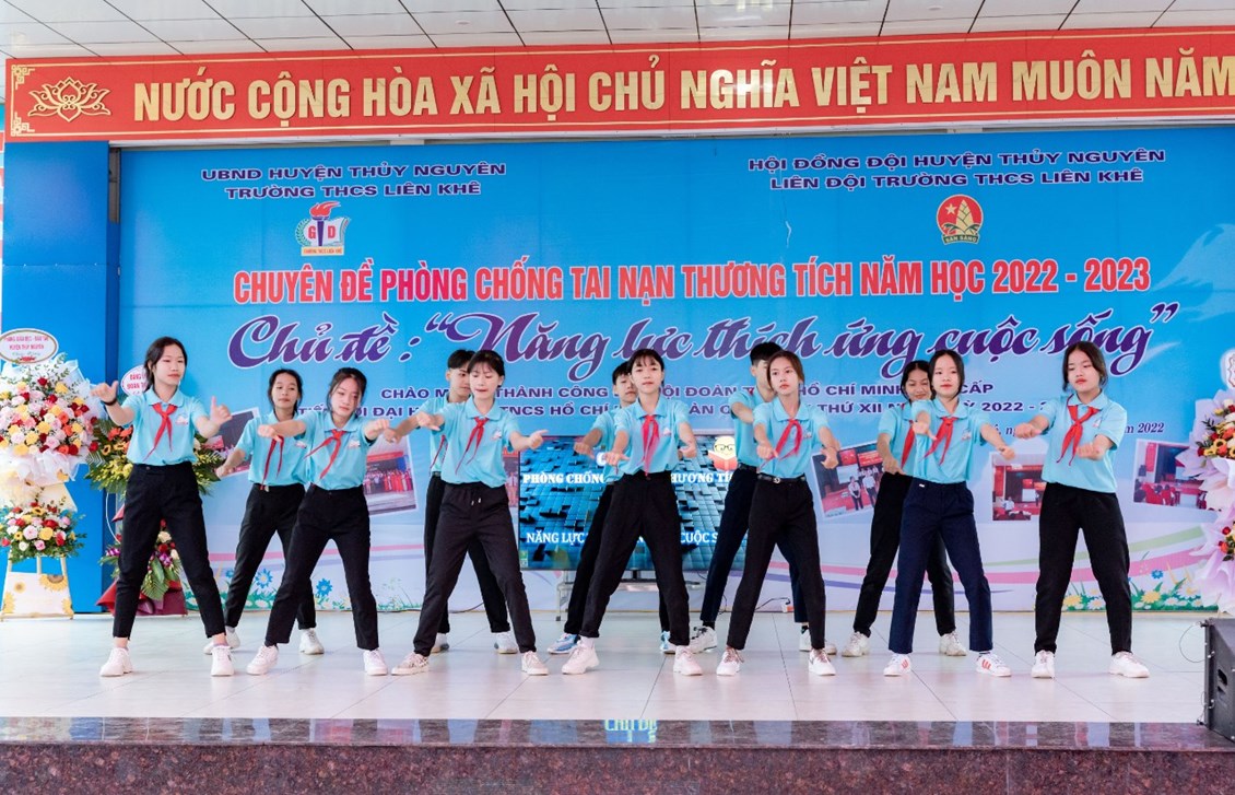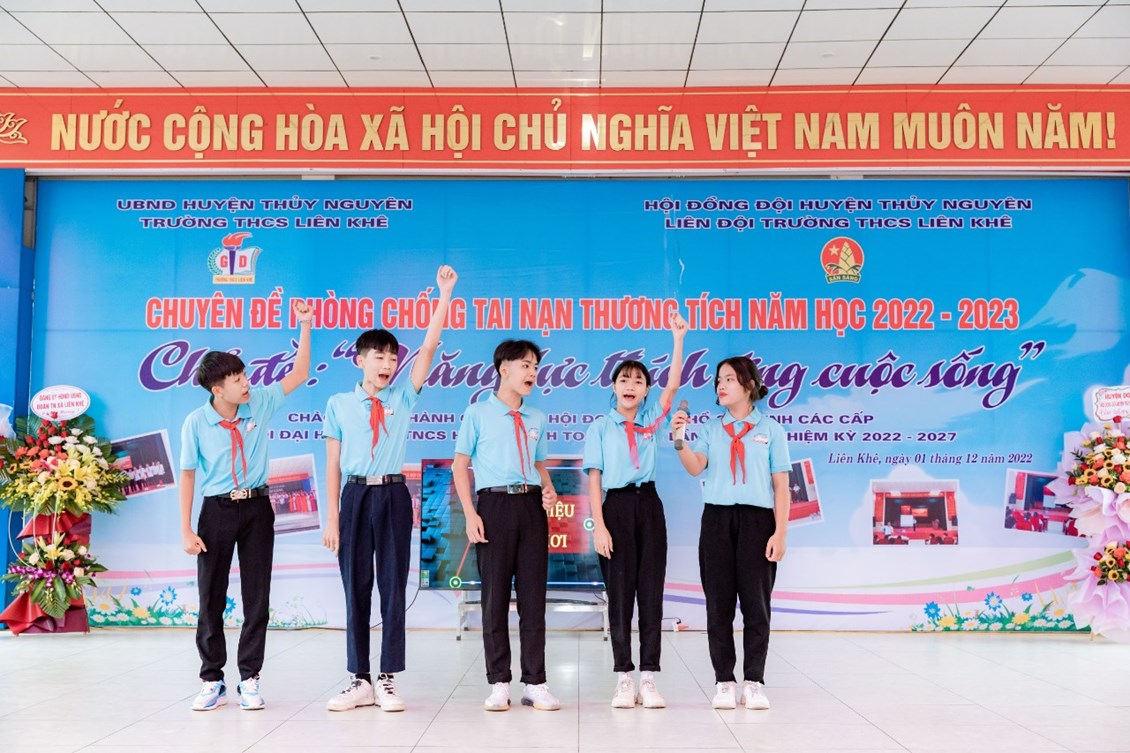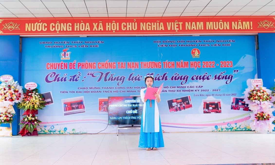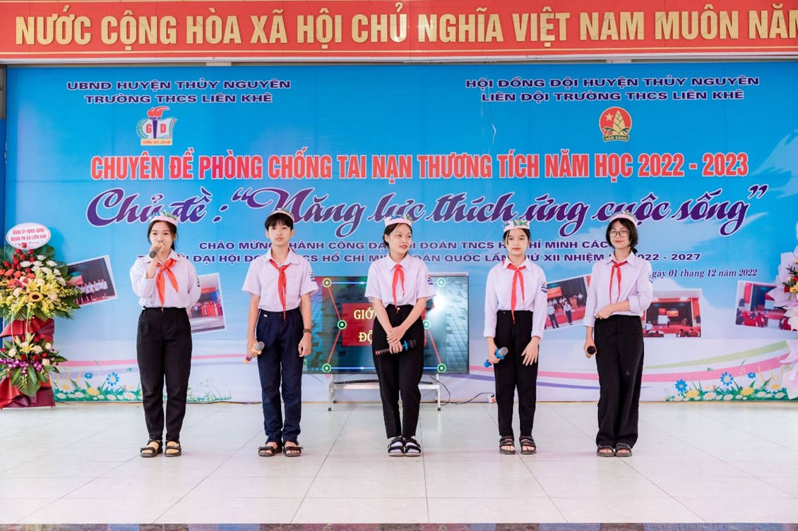 Thực hiện Chương trình Công tác Đội và phong trào thiếu nhi năm học 2022 - 2023 của Huyện đoàn - Phòng Giáo dục và Đào tạo huyện Thủy Nguyên; Kế hoạch chỉ đạo của Chi bộ, Ban giám hiệu nhà trường về việc tổ chức các hoạt động chào mừng kỷ niệm ngày thành lập Quân đội nhân dân Việt Nam 22/12. 50 năm ngày Điên Biên Phủ trên không; Chào mừng thành công Đại hội Đoàn TNCS Hồ Chí Minh các cấp, tiến tới Đại hội Đoàn TNCS Hồ Chí Minh toàn quốc lần thứ XII nhiệm kỳ 2022 - 2027, ngày 1/12/2022 Liên đội trường THCS Liên Khê tổ chức Chuyên đề cấp huyện: “Phòng chống tai nạn thương tích” với chủ đề Năng lực thích ứng với cuộc sống .