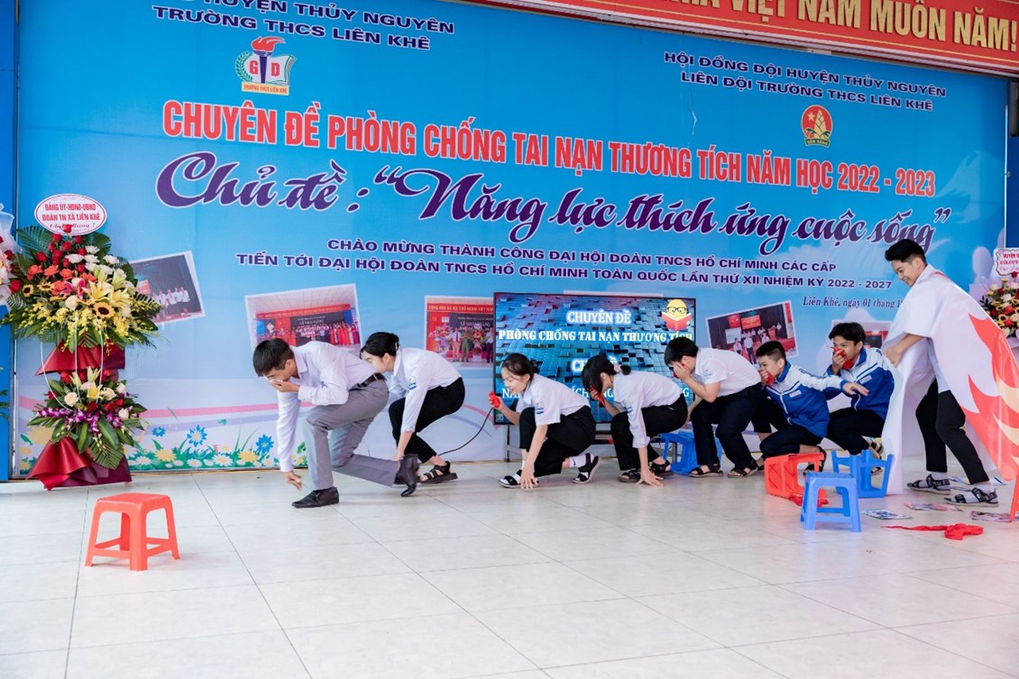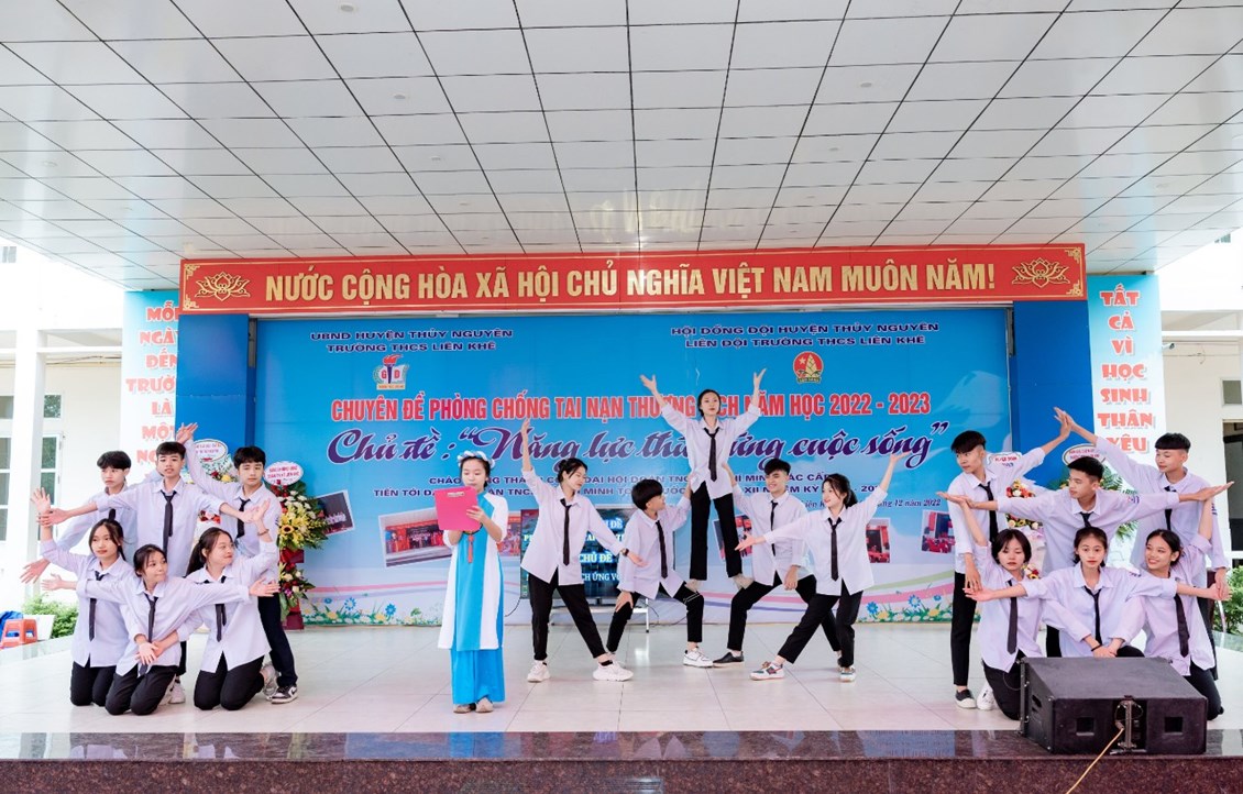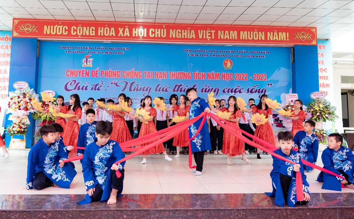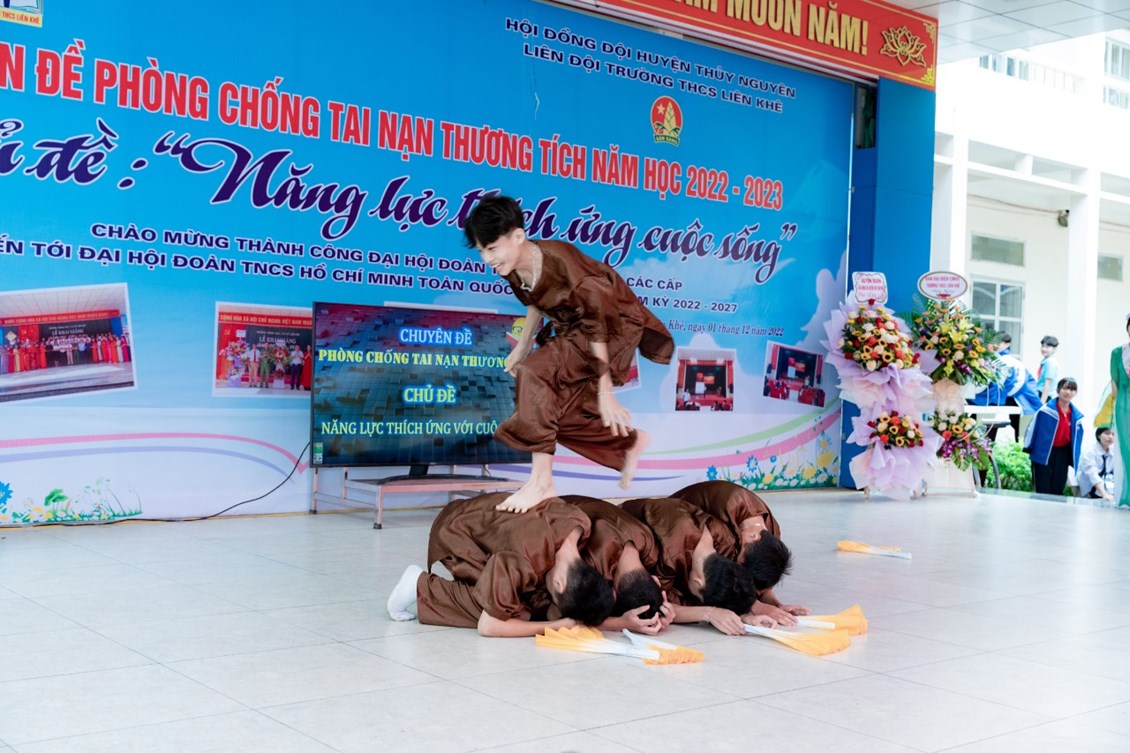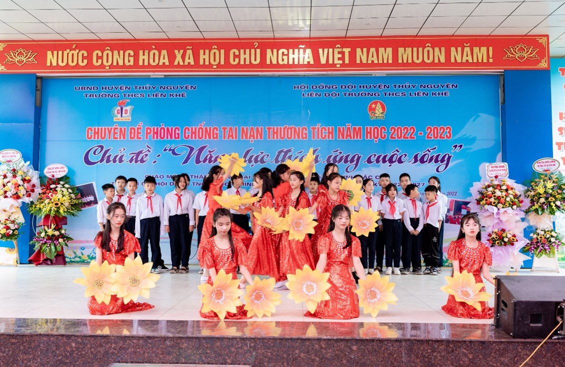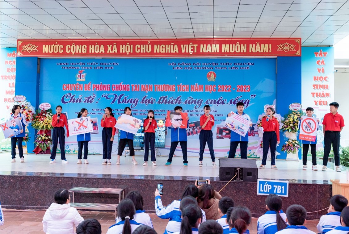 Thực hiện Chương trình Công tác Đội và phong trào thiếu nhi năm học 2022 - 2023 của Huyện đoàn - Phòng Giáo dục và Đào tạo huyện Thủy Nguyên; Kế hoạch chỉ đạo của Chi bộ, Ban giám hiệu nhà trường về việc tổ chức các hoạt động chào mừng kỷ niệm ngày thành lập Quân đội nhân dân Việt Nam 22/12. 50 năm ngày Điên Biên Phủ trên không; Chào mừng thành công Đại hội Đoàn TNCS Hồ Chí Minh các cấp, tiến tới Đại hội Đoàn TNCS Hồ Chí Minh toàn quốc lần thứ XII nhiệm kỳ 2022 - 2027, ngày 1/12/2022 Liên đội trường THCS Liên Khê tổ chức Chuyên đề cấp huyện: “Phòng chống tai nạn thương tích” với chủ đề Năng lực thích ứng với cuộc sống .